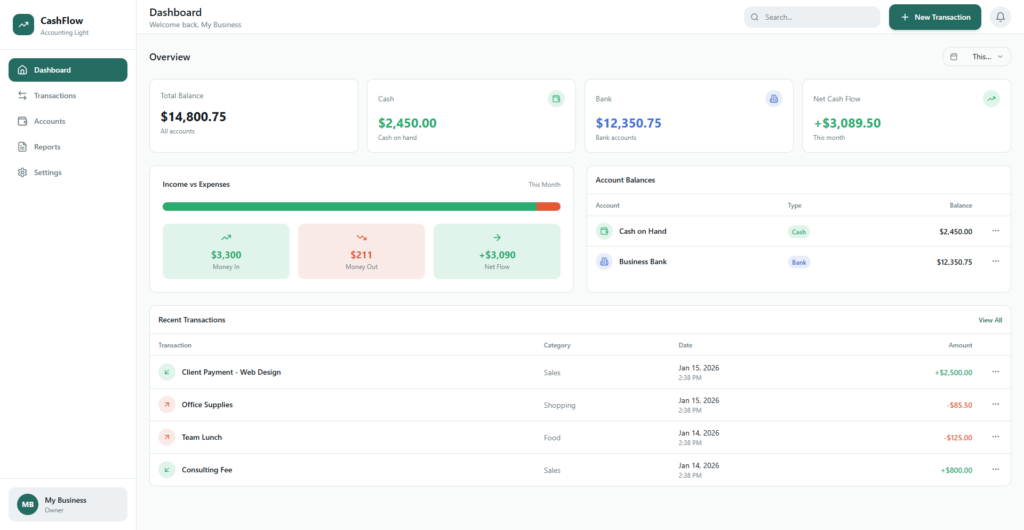 A lightweight financial tracking system focused on cash movement rather than full accounting rules. It helps teams record income and expenses, categorize transactions, and understand cash position over time. Designed for internal tracking and operational visibility.