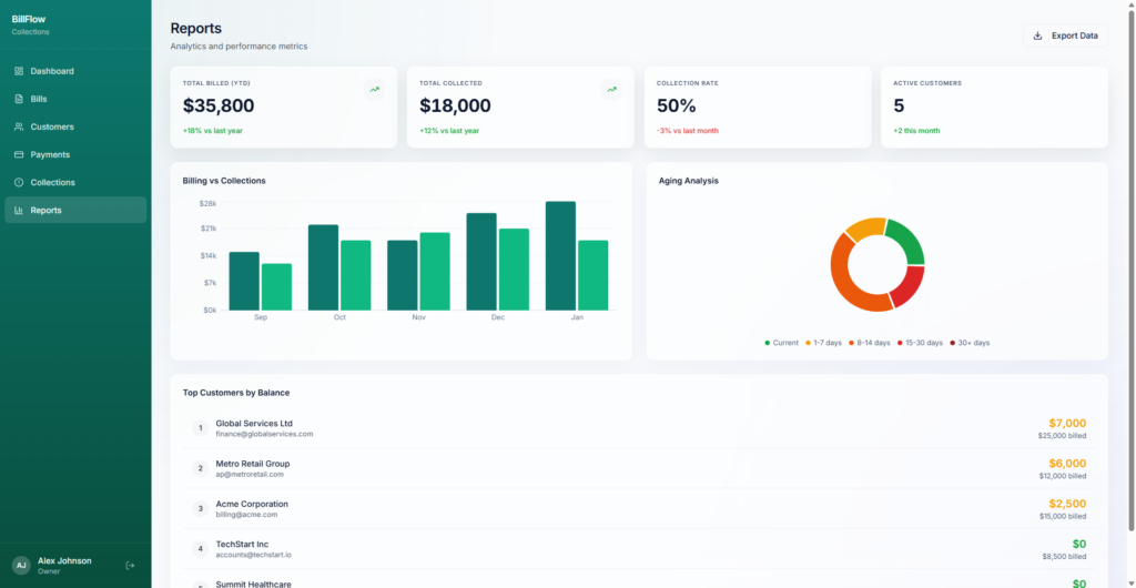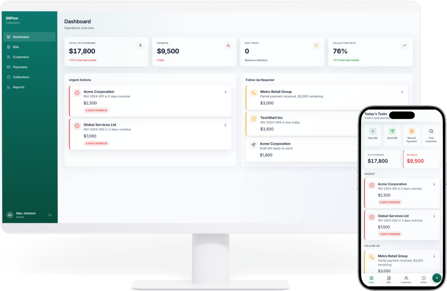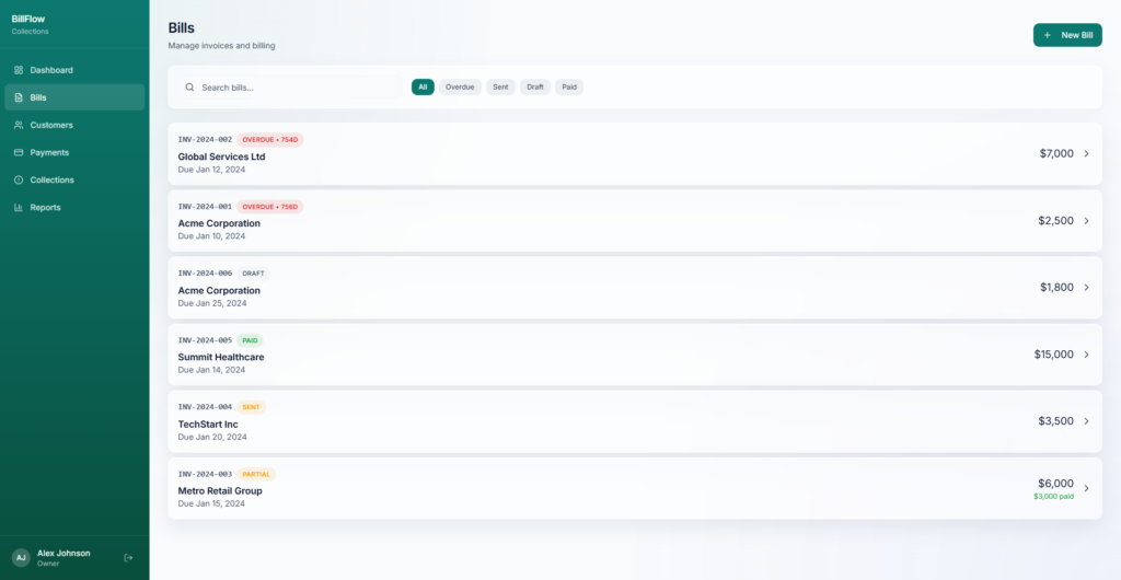 The system focuses on clarity rather than accounting depth. It does not attempt to replace full accounting software. Instead, it provides a dependable way to manage who has been billed, what has been paid, and what still requires action.